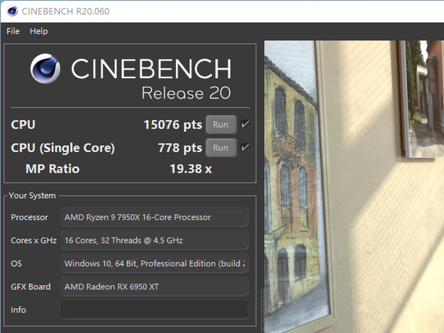利用CineBench R20实测可知,在开启AI超频之后,锐龙9 7950X的多核心性能有了些许提升。