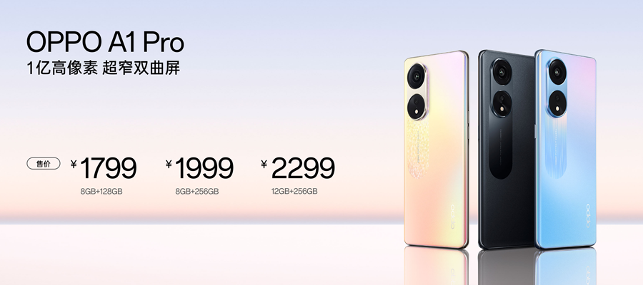11月16日消息,在今日,OPPO发布了OPPO A1 Pro这一款手机,这一款手机配备有双曲面屏幕、1亿像素主摄、轻薄外观设计、全功能NFC等一系列特点,售价为1799元起。