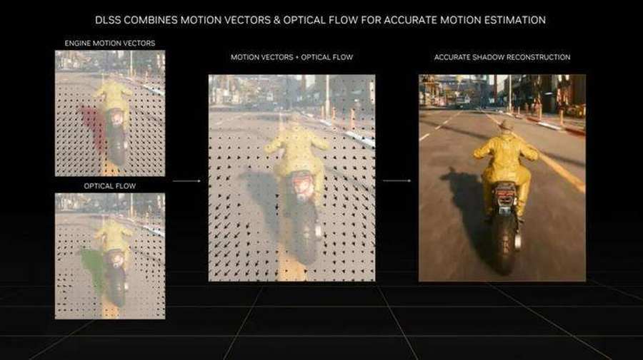 DLSS3的帧生成技术依赖于Ada Lovelace架构的独立光流处理器以及Tensor Core的AI算力,通过对画面进行数据的计算再由AI进行补全从而生成画面信息,实现游戏帧数的提升。而这一项技术可直接生成游戏第1帧3/4的像素以及整个游戏第2帧,相当于使用1/8的算力,就完成整个计算过程,在帧数提升的同时也可实现资源开销的减少。