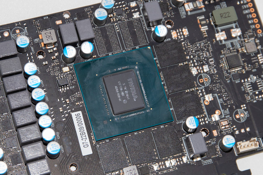 耕升 GeForce RTX 4070 Ti 追风EX在PCB的中心部位可以看到其采用的AD104-400核心,这一核心相比较于NVIDIA提供的方案在Boost频率上提升到了2655MHz。而在核心周围的一圈的则是12GB的GDDR6X显存,来自美光供应。