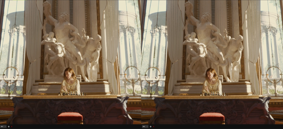 上图是AV1(左)和AVC(右)的画质对比。
