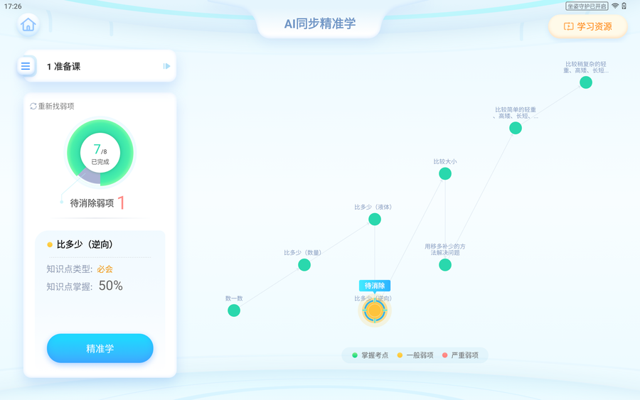科大讯飞AI学习机T20 Pro结合知识点体系、区域考情和新课标要求,生成每一小节知识图谱,进行学情诊断。根据最近发展区理论结合诊断结果,为每个孩子规划适合自己的学习路径,再根据推荐的学习路径,孩子只需学习未掌握的、适合其学习的知识点,通过知识点微课,以及针对性的举一反三训练巩固就能快速掌握知识点,攻破薄弱项。