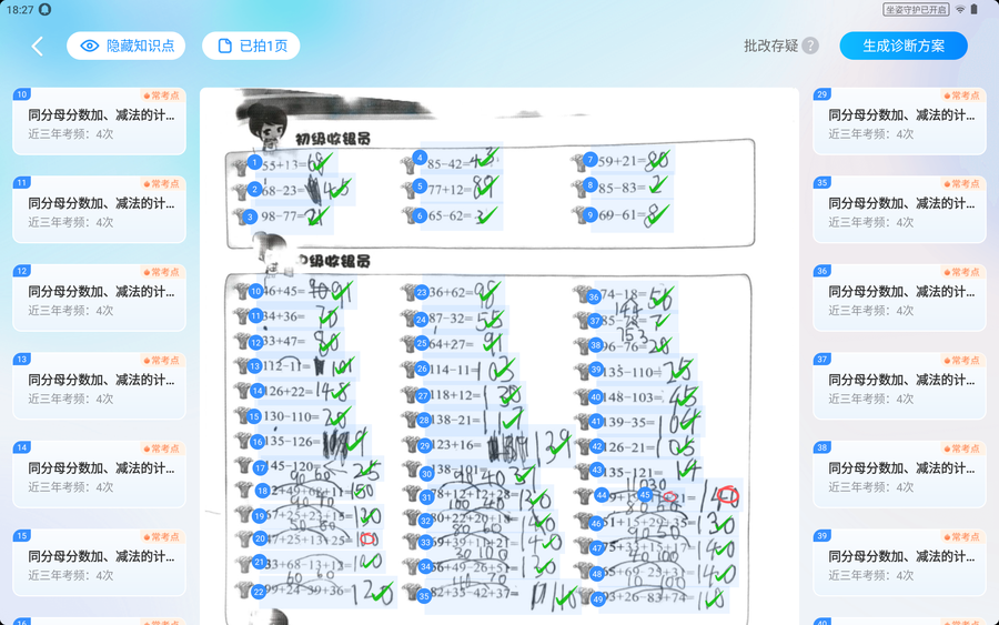 科大讯飞AI学习机T20 Pro还支持包括填空、选择、判断、解答、竖式计算、脱式计算、解方程、听在内的8种以上题型并实现智能批改。并且结合T20 Pro的“AI作业诊断”功能,可以对做好的数学习题、试卷通过拍照后进行智能批改,并且分析错题找到孩子学习薄弱点,精准推题提升学习效率,省下学习时间。也方便家长在课后以及没有老师的假期中,即使了解孩子作业做得对不对、质量如何等。
