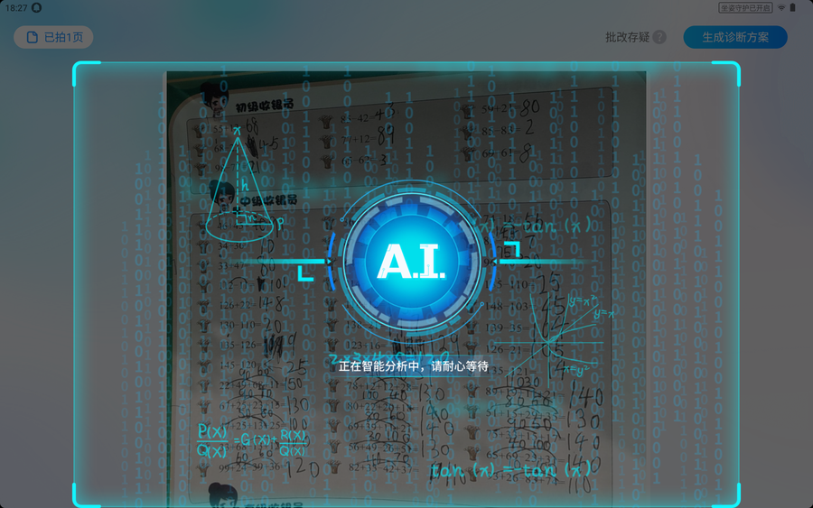 摄像头在扫描完作业或试卷后通过AI进行智能分析