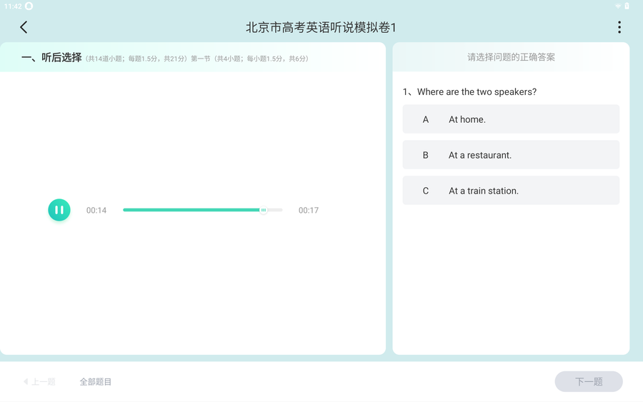 近年全国各地的中高考英语都陆续新增了听说考试的开考区域,针对这一情况,科大讯飞AI学习机T20 Pro的英语AI听说模拟考试功能拥有中高考听说考试考试同源的评分技术,使用了各开考区域的考试评分标准,让孩子模拟考试表现,和正式考试评分更一致;并且100%还原考试界面、流程,按照区域考试标准评分,提前熟悉并减少紧张感。
