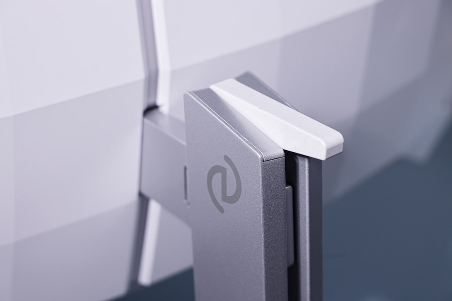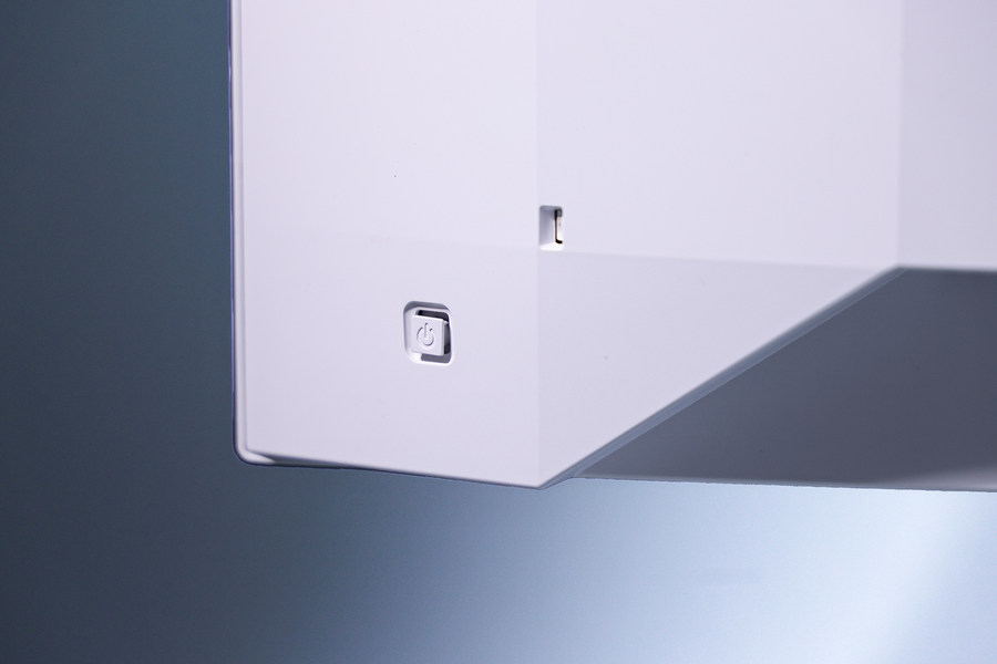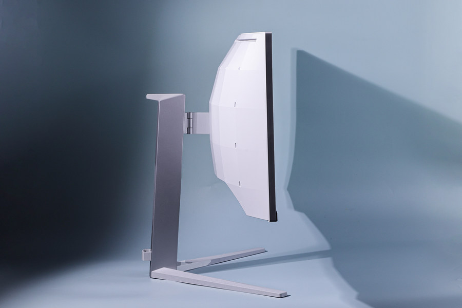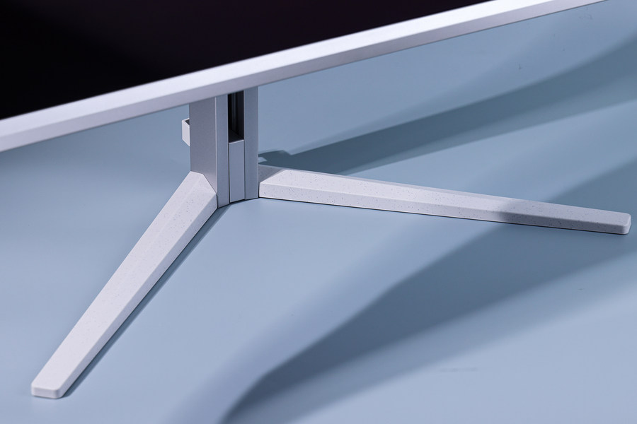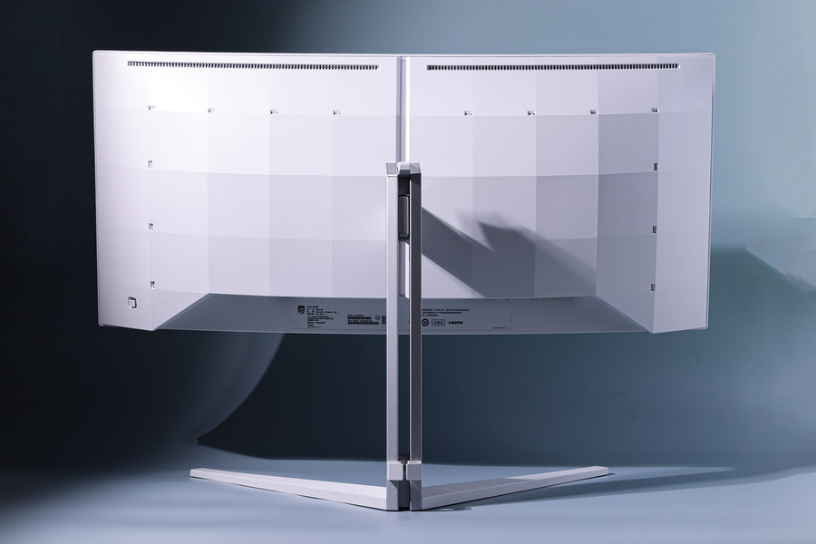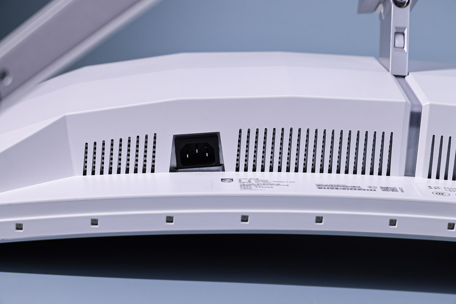 这款显示器背面大量运用了格纹设计,配合白色外观,令背面看上去很有立体感。