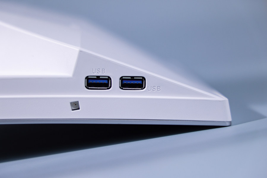 显示器左侧下端还设计有两个USB 3.2 Gen 1接口。