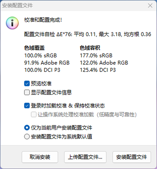 测试小结:笔者测得这款显示器具备了100%的DCI-P3色域覆盖率。这一表现堪称出色。
