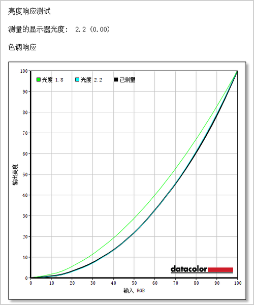 测试小结:这款显示器实际的伽马曲线和理想的状况相比几乎一致,表现依然出色。