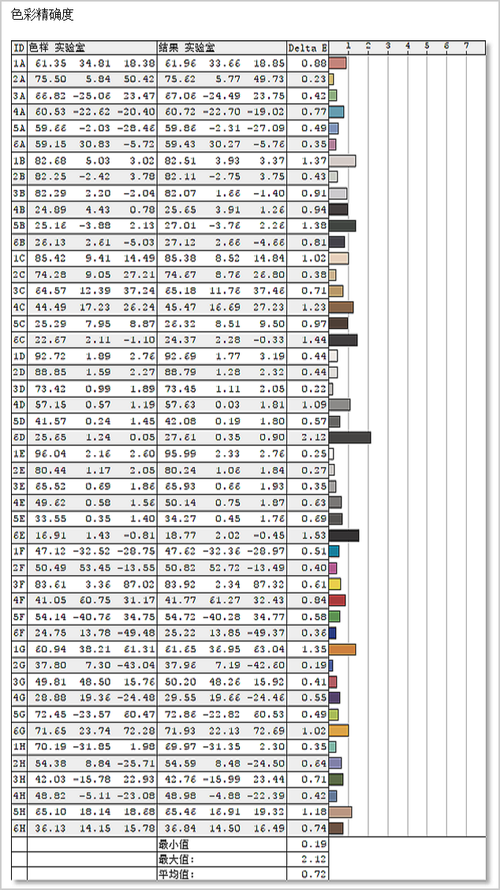 测试小结:平均△E为0.72,△E≥2的颜色只有一种。它的色彩精准度也属于相当不错的。