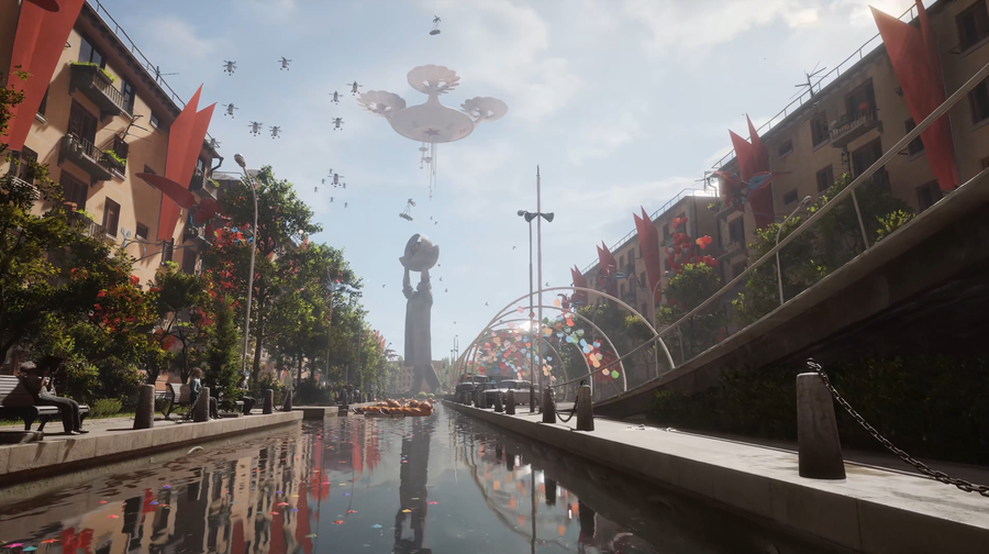 《原子之心》正好也是一部以人工智能为题材的苏式反乌托邦美学大作。游戏设定在平行时空下20世纪50年代的苏联,讲述了二战期间开发出的机器人和AI技术帮助苏联走上巅峰,实现了发达、和谐、自动化的理想国度,但在某一天却突然遭到机器人集体反抗的故事。