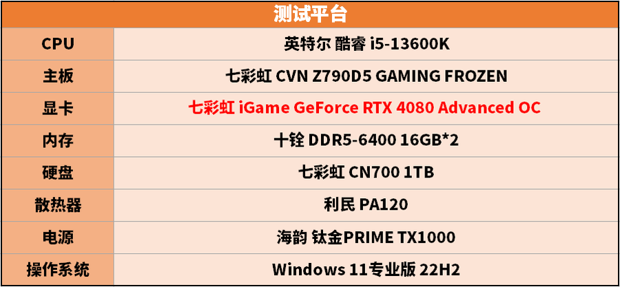 那么这样一款高画质大作,它的配置要求如何呢?笔者目前正在使用的是目前比较热门的4K游戏平台,处理器为13代酷睿i5-13600K,显卡是七彩虹iGame GeForce RTX 4080 16GB Advanced OC,看看在这款游戏里能否满足4K分辨率,甚至120Hz以上的高刷新率运行。