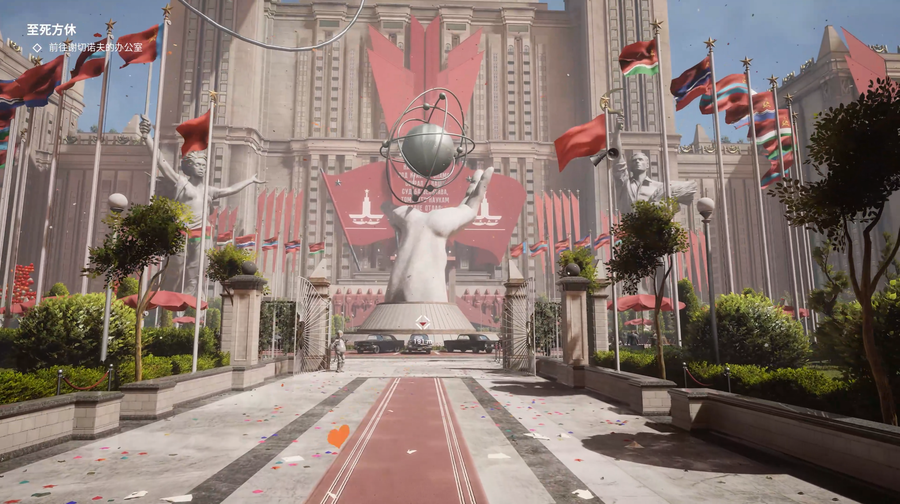 在画质风格方面,这款游戏虽然暂时还没有支持光线追踪功能,但是画质在光栅渲染游戏里已经称得上相当不错了,无论场景材质的反射质感还是光照和阴影效果都非常出色。城市建筑也是满满的苏联时代宏伟艺术风格,令人在游玩中不由得心生敬畏。