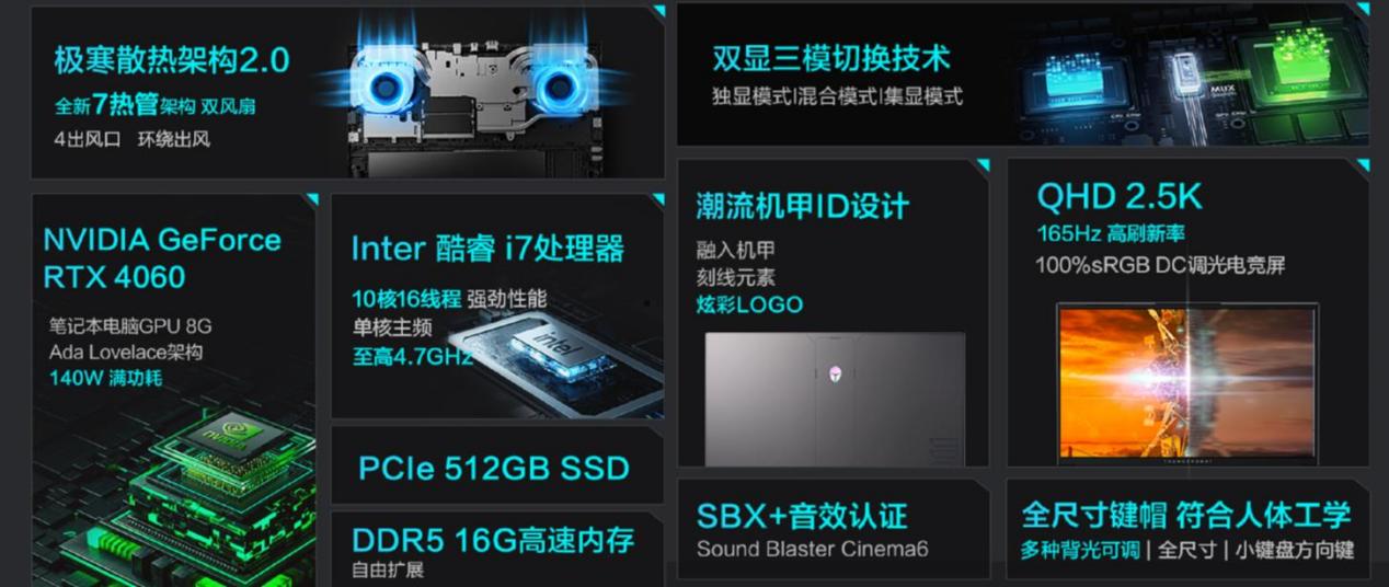 RTX 4060 /i7-12650H/8G 140W/16G DDR5/512 SSD/16.0' 2K 165Hz 100%sRGB 首发价:7149元