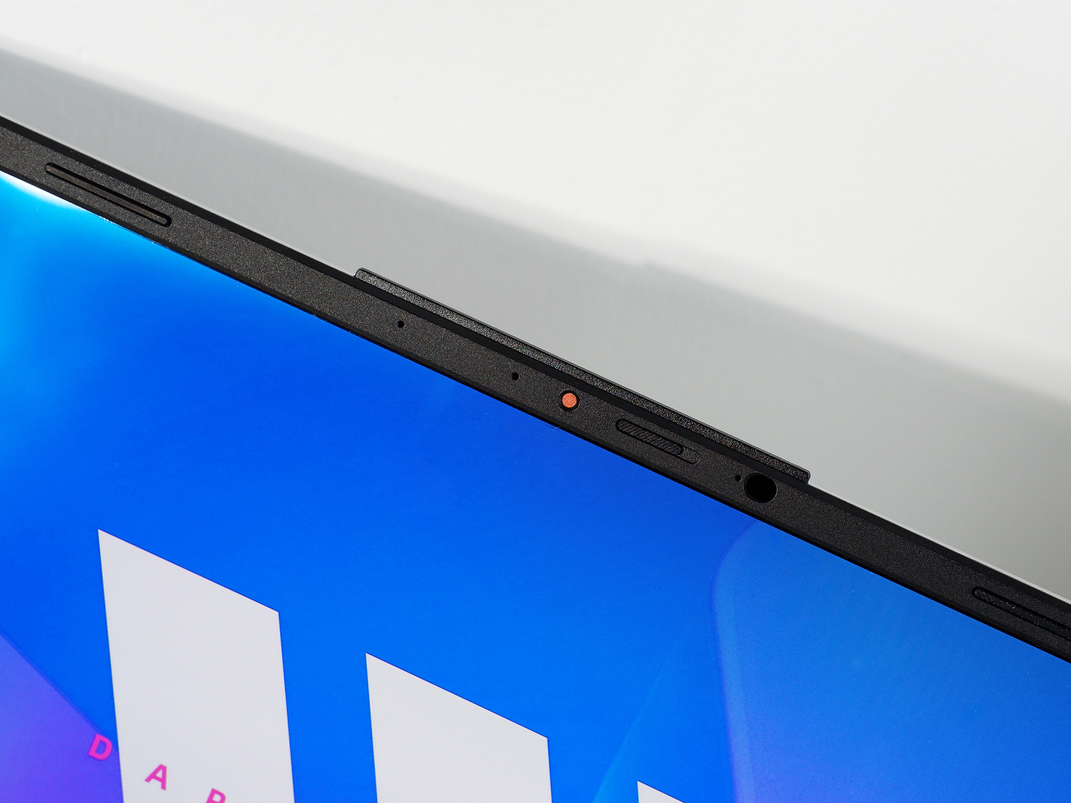 屏幕上边框配备有1080p高清摄像头,支持第三代3DNR降噪技术。同时搭载双麦克风阵列,支持AI双向语音降噪。