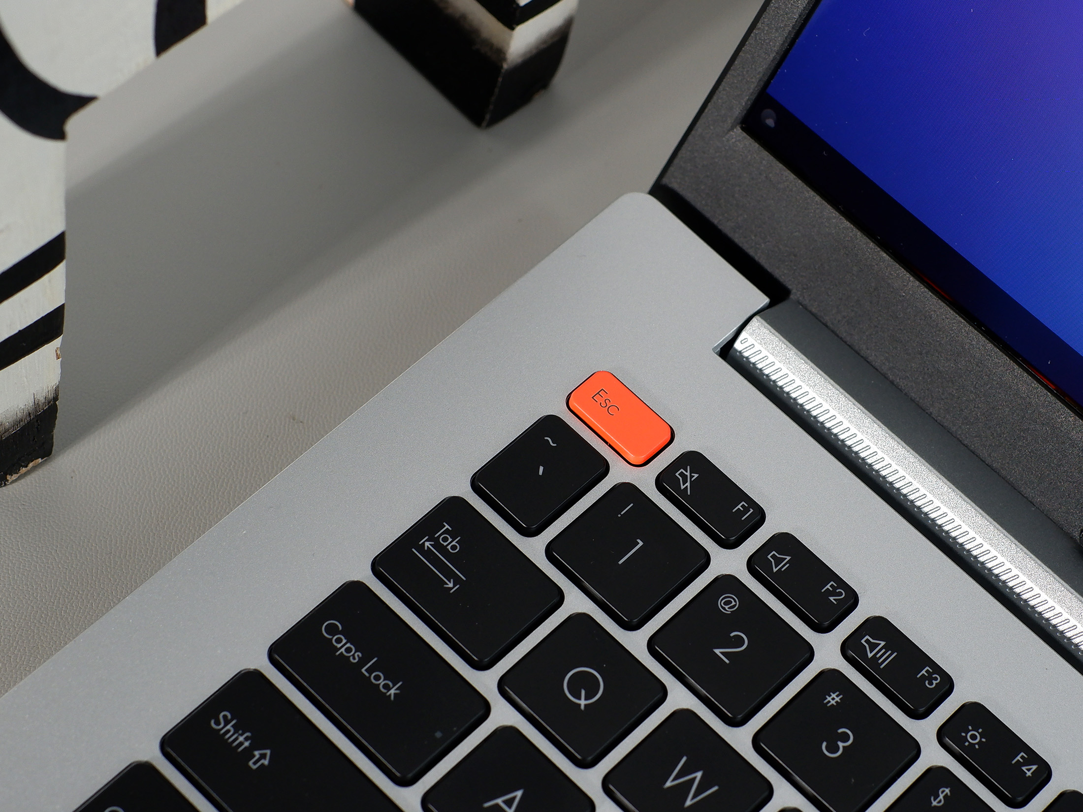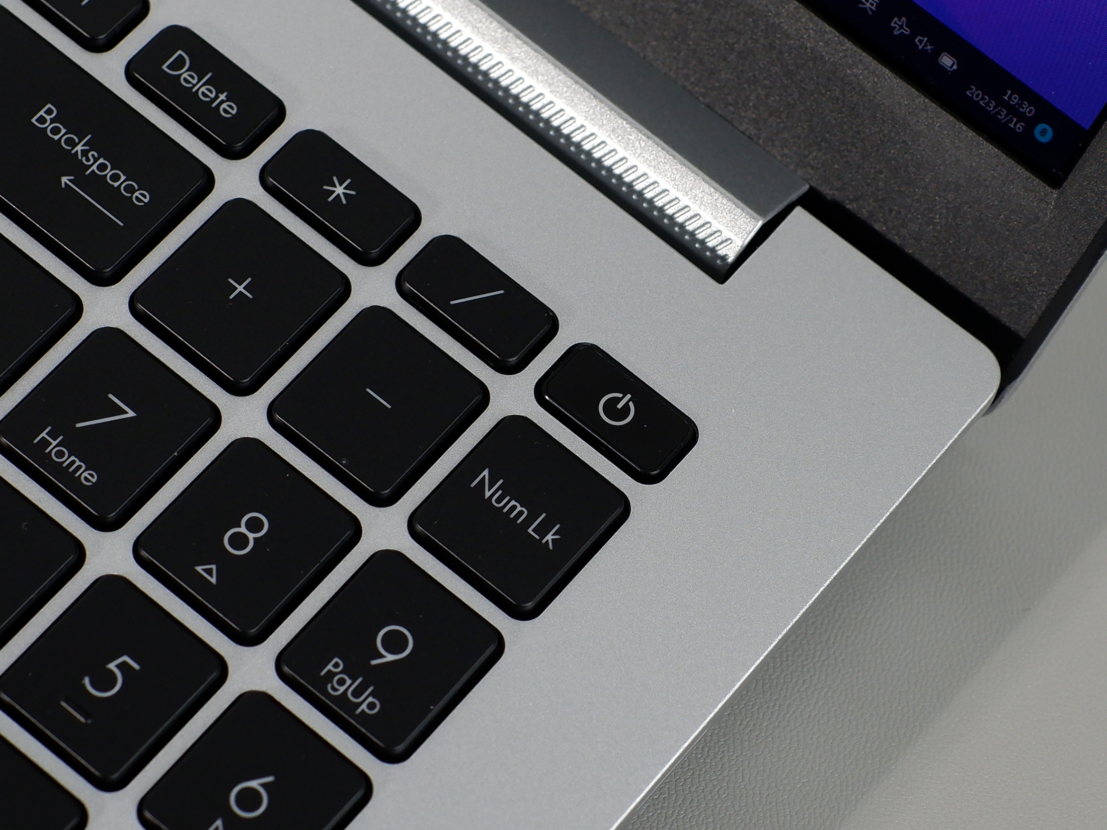 开机键位于键盘面右上角。同时,这枚开机键还集成了指纹识别。