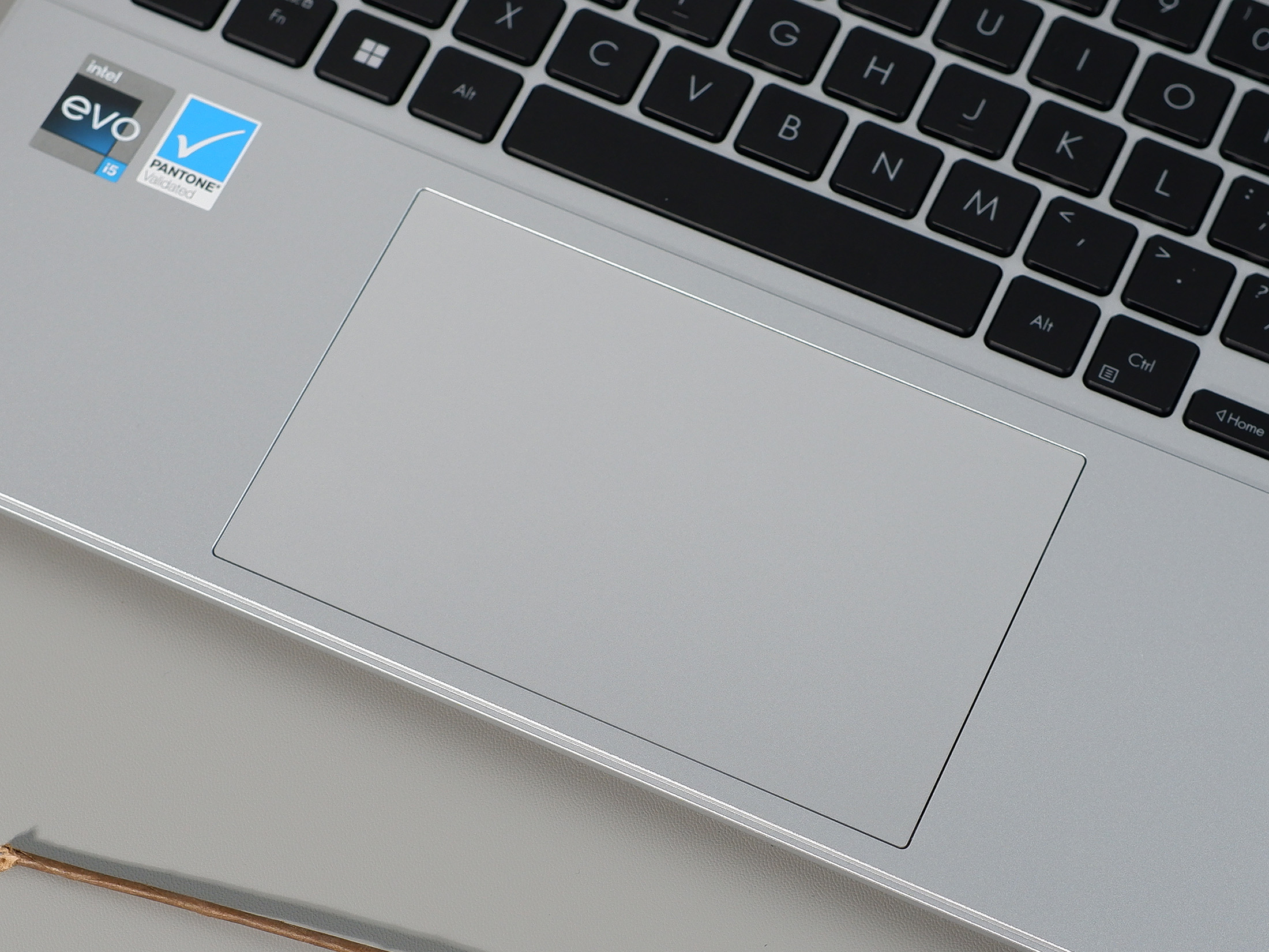 左侧掌托上面的贴纸。这款轻薄本通过了英特尔Evo平台认证。