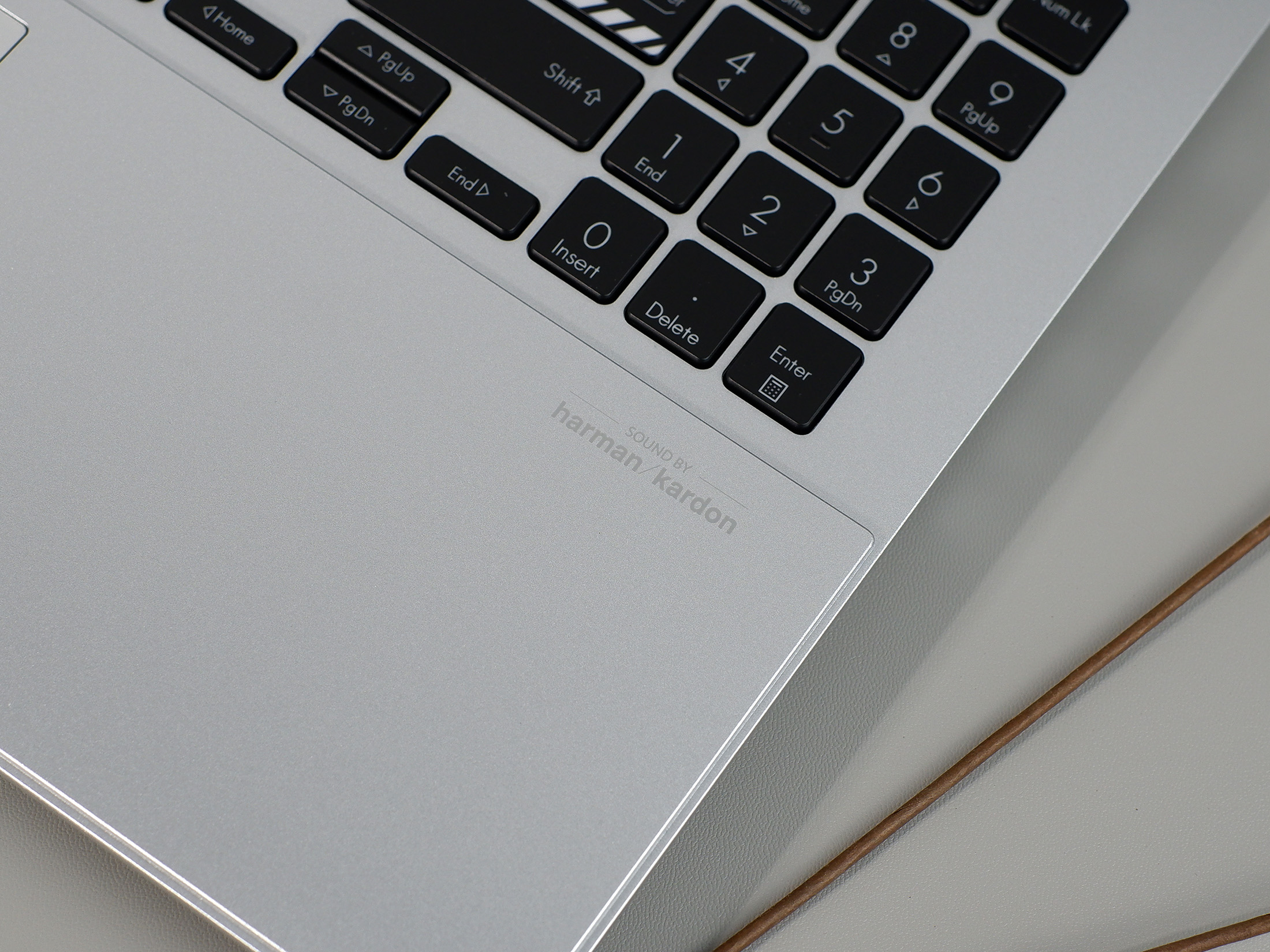 右侧掌托上面标注有哈曼卡顿音响认证的标识。