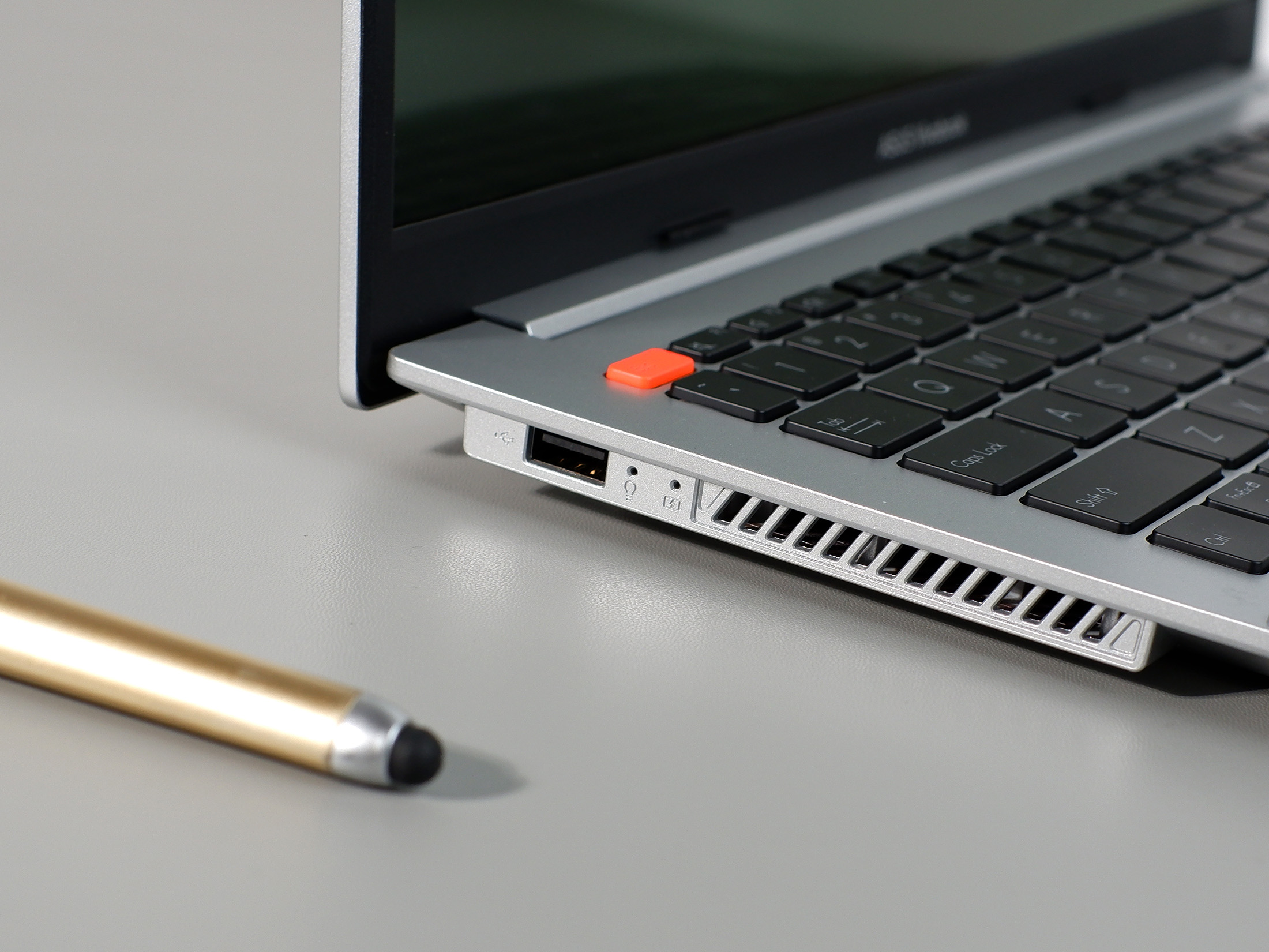 这款轻薄本的机身左侧设计了一个 USB 2.0接口,以及两个指示灯。 USB 2.0接口适合外接鼠标、键盘使用。
