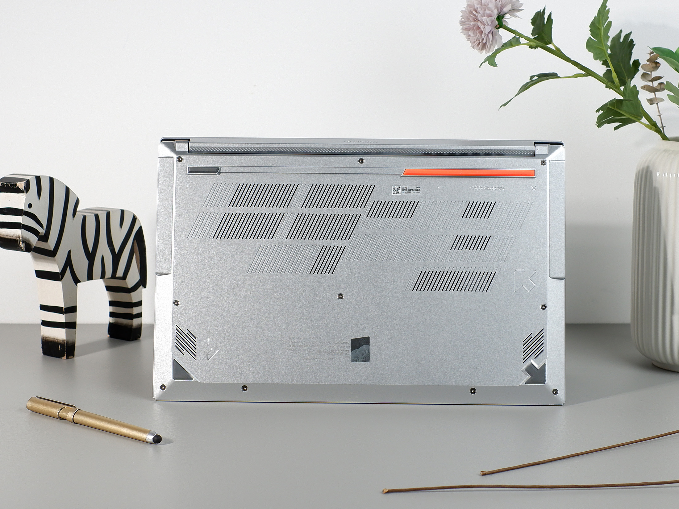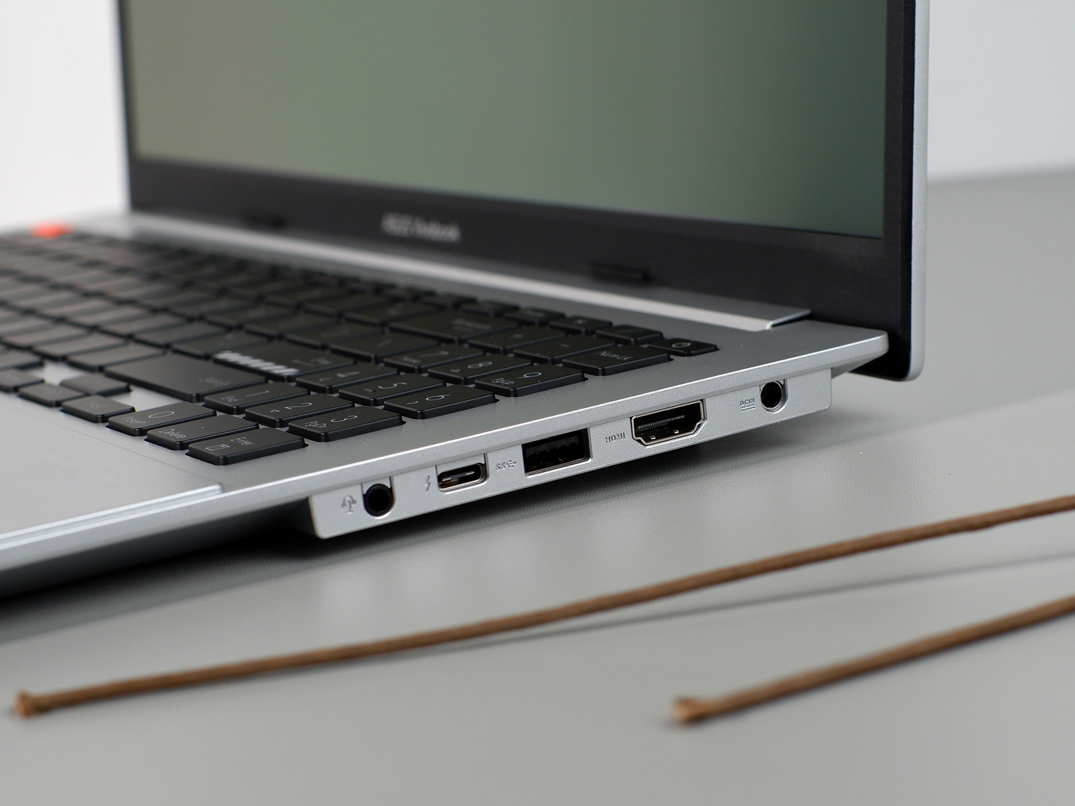 这款轻薄本的机身右侧设计了电源接口、一个HDMI接口、一个USB3.2 Gen1接口、一个雷电4接口、一个3.5mm耳机耳麦二合一接口。