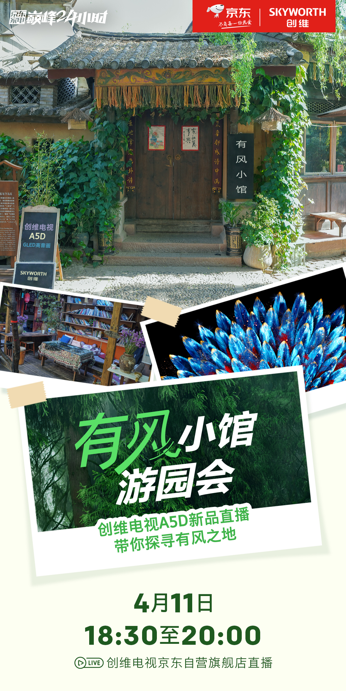 传递自然随性的生活理念,找寻自我治愈的力量,刘亦菲时尚、正能量、全球化的形象,让创维“离年轻人更近”。创维GLED高音画电视A5D「有风小馆游园会」直播,将与年轻用户一起找寻满溢温情与治愈的生活方式。等风,也在等你,敬请关注4月11日18:30-20:00创维电视京东自营旗舰店新品直播,一起乐享有风生活!