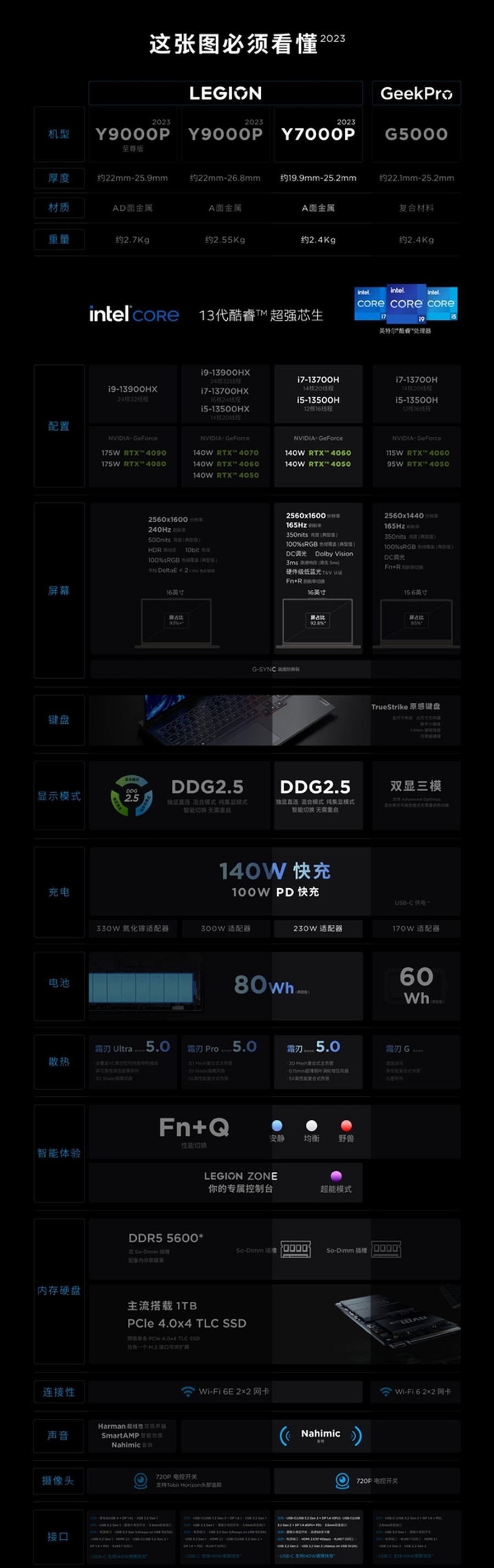 其他方面,这款笔记本与9000P系列一样搭载80Wh电池,支持140W快充,支持DDG2.5显示模式切换。 值得一提的是,在搭载RTX 4060显卡的同时,Y7000P的厚度为19.9-25.2mm,重量为2.4kg,比9000P系列更为轻薄。 目前,联想暂未公布拯救者Y7000P 2023的售价。