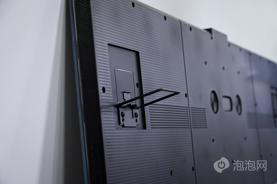 创维壁纸电视A7D实现的超薄无缝贴墙,一是在设计上大胆突破,通过专利技术及定制超薄零部件让背板结构为纯平形态,正面几乎全是屏幕,后面也没有了沉重凸起的“包袱”;二是标配可掀起式挂架,无需搭配和购买厚重的通用电视挂架就能轻松上墙,并且单手即可掀起整机,轻松拔插隐藏于电视背面的线缆。