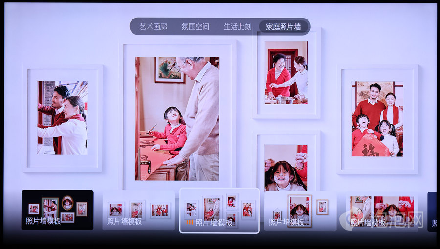 虽然现在电视的尺寸是越来越大,但家中的电视机在关机后,整个墙面就像一块巨大的矩形视觉黑洞,造成沉浸体验和断电审美的剥离。而创维壁纸电视A7D的设计思路是“家里的艺术品”,所以创维专门为这台壁纸电视搭载了“百变艺术屏”功能,通过遥控器可一键设置艺术画廊、生活此刻、氛围空间、家庭照片墙等模式,让看电视之外的每时每刻也能保持沉浸感,并让家中有更浓厚的艺术氛围。并且, 每个模式下都有丰富的图片或者主题可以选择。