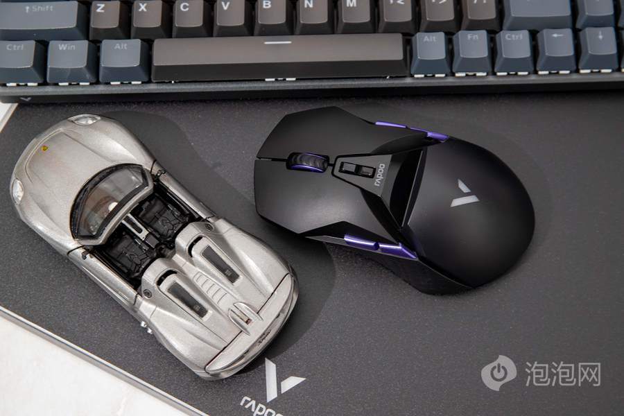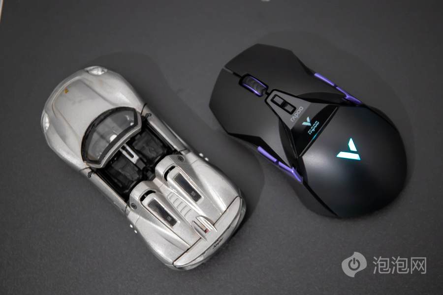 雷柏VT950 Pro屏显双模无线游戏鼠标采用了超跑的设计元素语言,在外观塑造上呈现了灵动的流线以及极具力量感的棱角组合,因此在外观方面显得非常具备有特色。而这款鼠标虽然采用到了超跑设计元素,但是其和此前我们评测的雷柏VT960 Pro屏显双模无线游戏鼠标所采用的大面积镂空设计却有所不同。