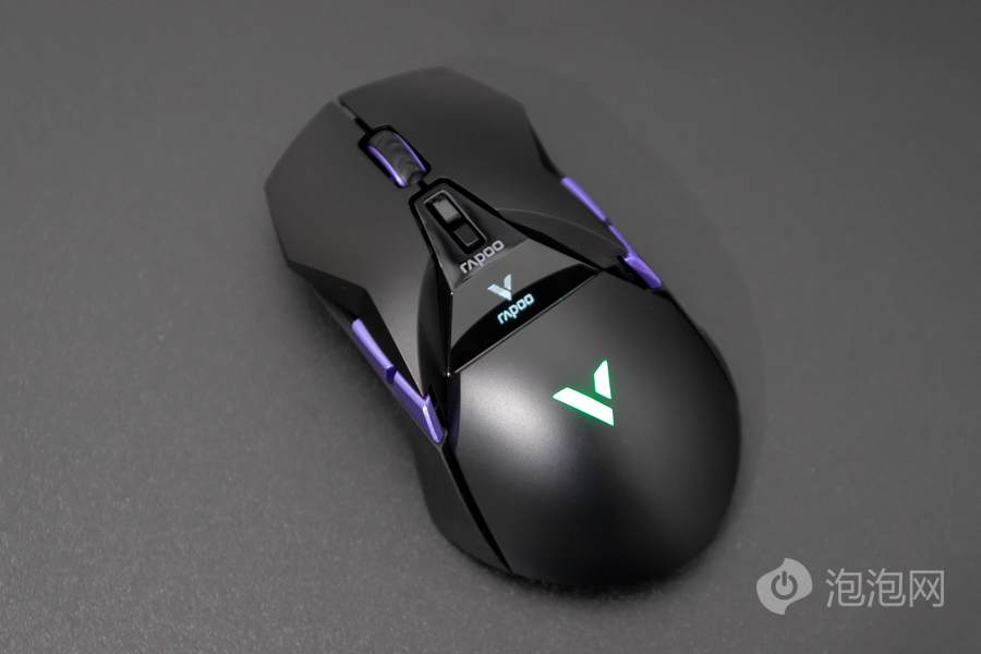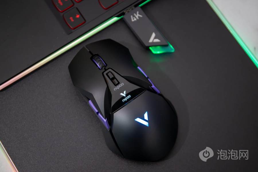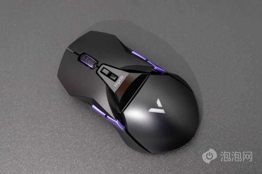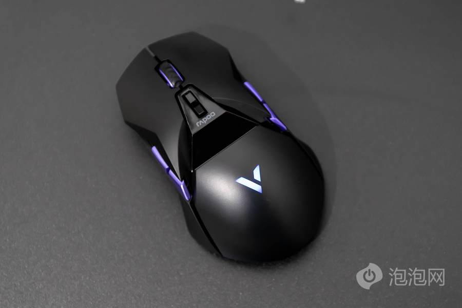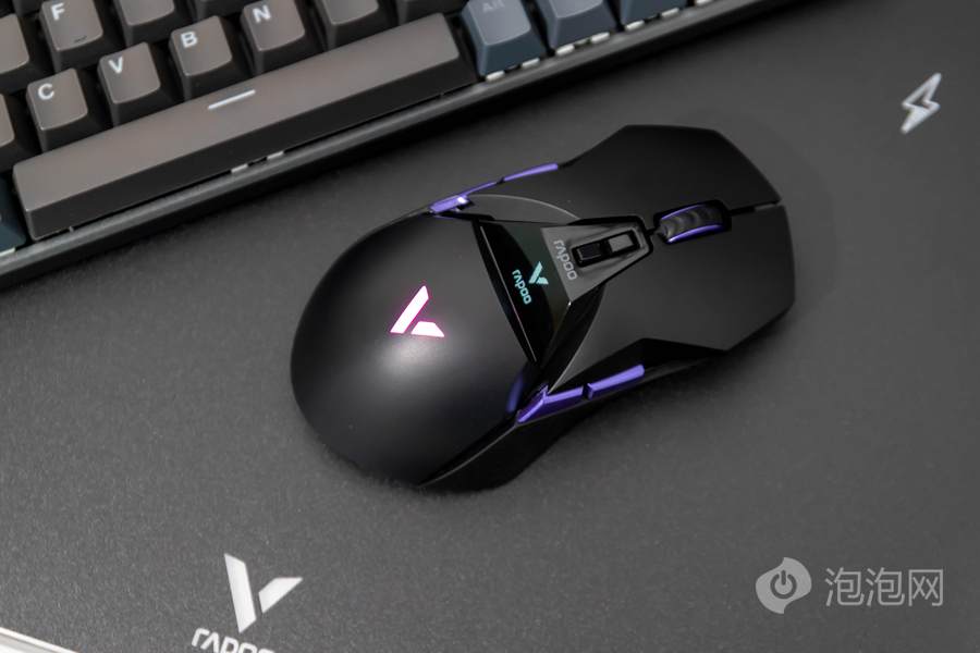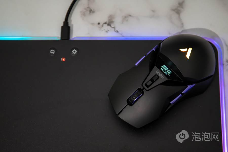 在鼠标顶面的中部,雷柏VT950 Pro屏显双模无线游戏鼠标配备了一块客制化OLED屏幕,可以显示鼠标相关参数或者让用户自行设置内容进行显示。而在鼠标的掌托部分,雷柏VT950 Pro屏显双模无线游戏鼠标加入了雷柏的透光LOGO,内具有1680万色的LED灯光,可提供多种不同的灯光方案。这客制化的OLED屏幕以及多彩的灯光效果,结合鲜明特点的外观,为用户打造个性化游戏装备提供了全新的解决方案。