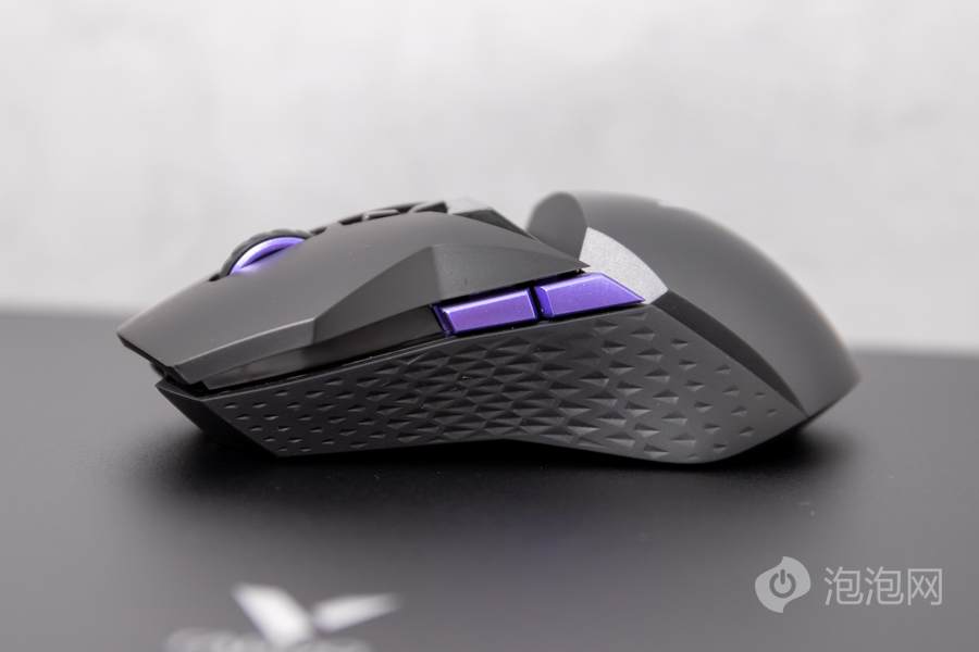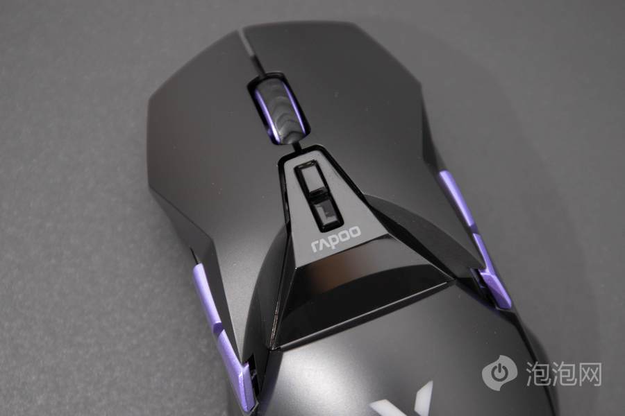 在鼠标左右按键的中间,雷柏VT950 Pro屏显双模无线游戏鼠标配备了一颗100万次刻度手感的中键滚轮,滚轮还采用了带纹理的橡胶进行覆盖,可进一步带来更好的手感反馈。此款鼠标中键的后方还配备有两颗按键,默认为DPI按键,这两颗按键可进行相关的自定义操作,改变其用途。