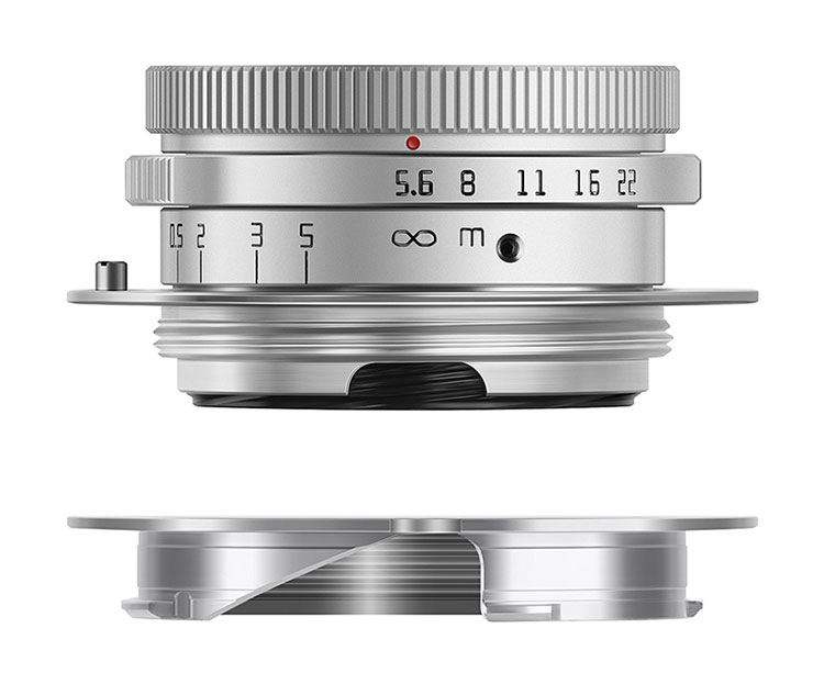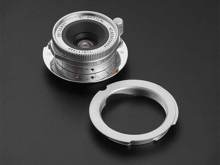 而TTArtisan此前发布过使用L39螺丝卡口的28mm F5.6 LTM,全球限量300支,建议售价为75000日元。TTArtisan 28mm F5.6 LTM非常古典,镜长只有18mm,重量只有140g,名符其实是一支口袋镜头。镜头采用4组7片光学结构,包括1片LD低色散镜片及2片高折射率镜片,最近对焦距离为1米,随镜附有黑色方形的遮光罩外,也包括一个“L39转M”卡口转接环,方便M卡口相机用户使用。