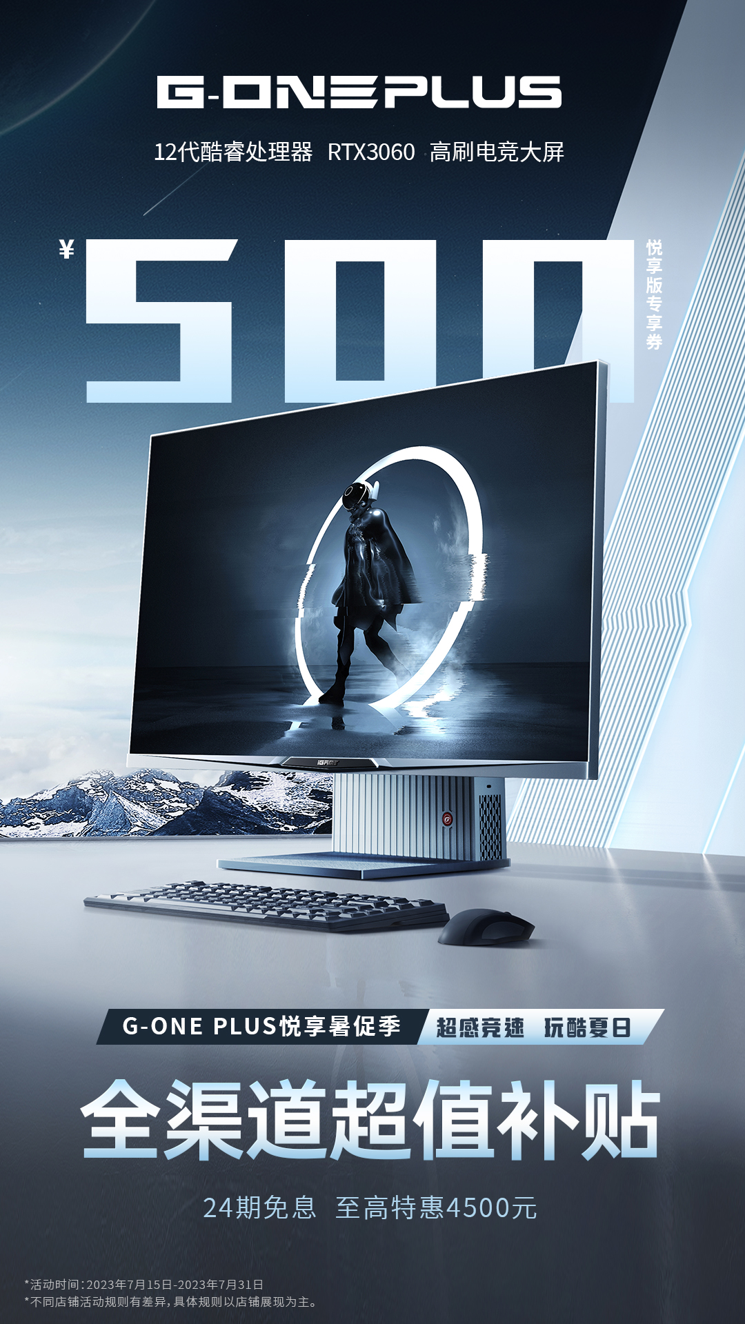 近日,从七彩虹官方获悉,iGame G-ONE Plus高端一体机悦享暑促季已经开始,活动时间为7月15日至31日,官方宣布线上全渠道限时补贴政策。在七彩虹官方线上店铺购买G-ONE Plus高端一体机最 高可享受4500元的特别优惠,针对iGame G-ONE Plus悦享版特定机型,同时还推出了500元超值抢券活动,至高可享受24期免息服务,且部分店铺还有晒单赢iGame电竞键鼠与定制鼠标垫的活动。售后方面,产品主机部分享受24个月不限次数上门一对一保修服务,叫修后次日即可快速上门解决,最大限度减少用户停机时间。