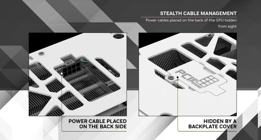 此外,这款RTX4070还有一处很特别的设计,它的8pin供电接口设计在了显卡背面,并且配备隐藏式挡板,可将8pin供电接口隐藏起来,有助于显卡安装的美观性。