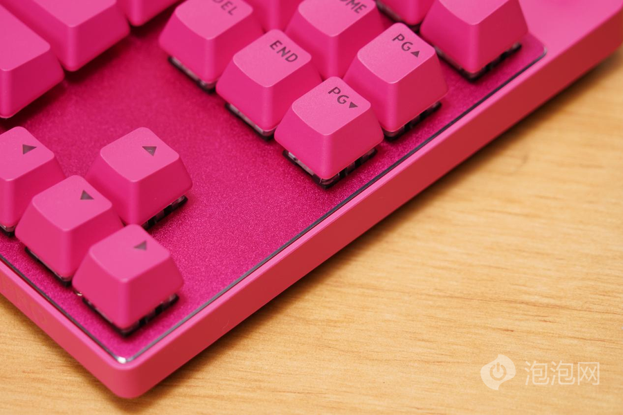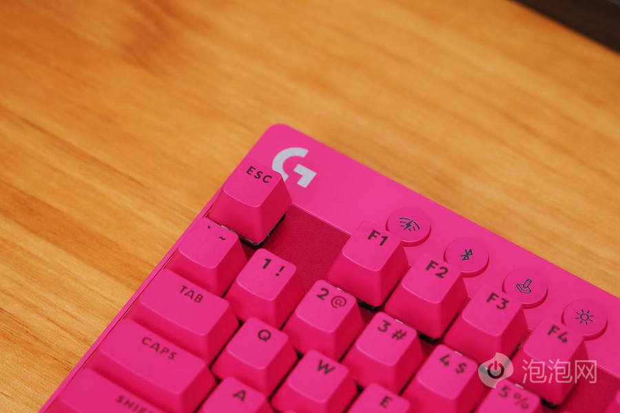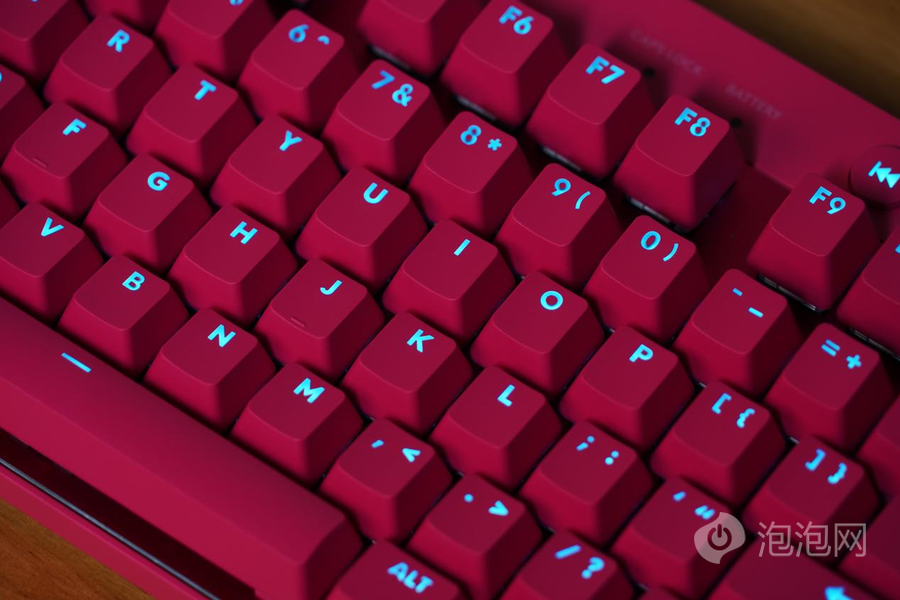 双拼的键盘设计带来了非常出色的质感,也体现了罗技PRO X TKL LIGHTSPEED旗舰级的定位。键盘的键帽采用了双色注塑PBT键盘,具备良好的耐用性。