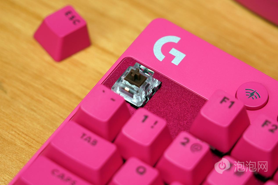 罗技PRO X TKL LIGHTSPEED拥有两种轴体可选,分别是GX T机械轴和GX L机械轴,其中T轴手感接近传统的茶轴,L轴的手感类似于传统的红轴。我们拿到的为T轴版本,具备较为明显的敲击感,回弹也十分有韧性,表现出色,不仅在游戏时具备良好的表现,打字等日常的操作也十分的合适,属于兼容性很强的轴体。