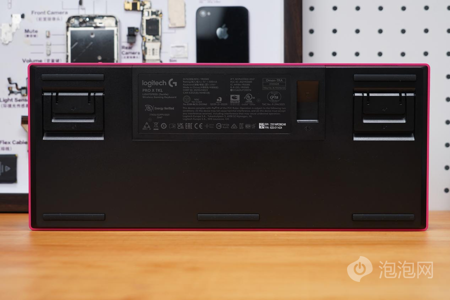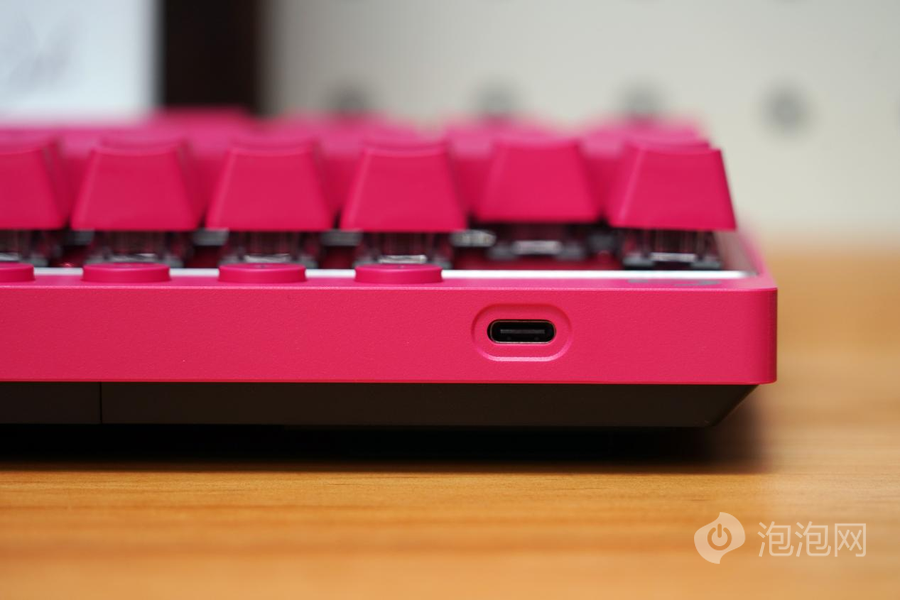 罗技PRO X TKL LIGHTSPEED的开关键以及Tyep-C接口都位于键盘的前部。