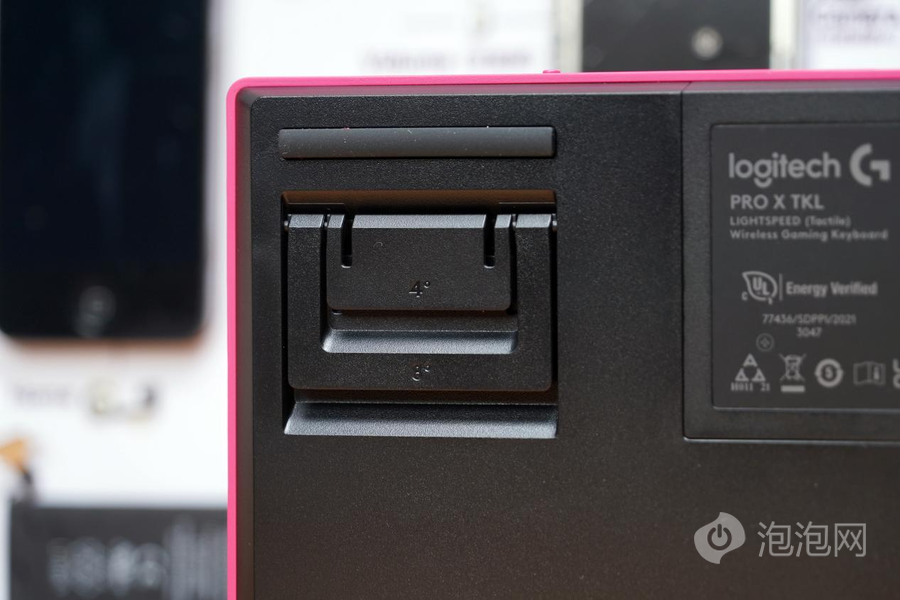罗技PRO X TKL LIGHTSPEED提供了两种角度的支架,可以将键盘抬起4°或者8°,为用户带来更为舒适的体验。