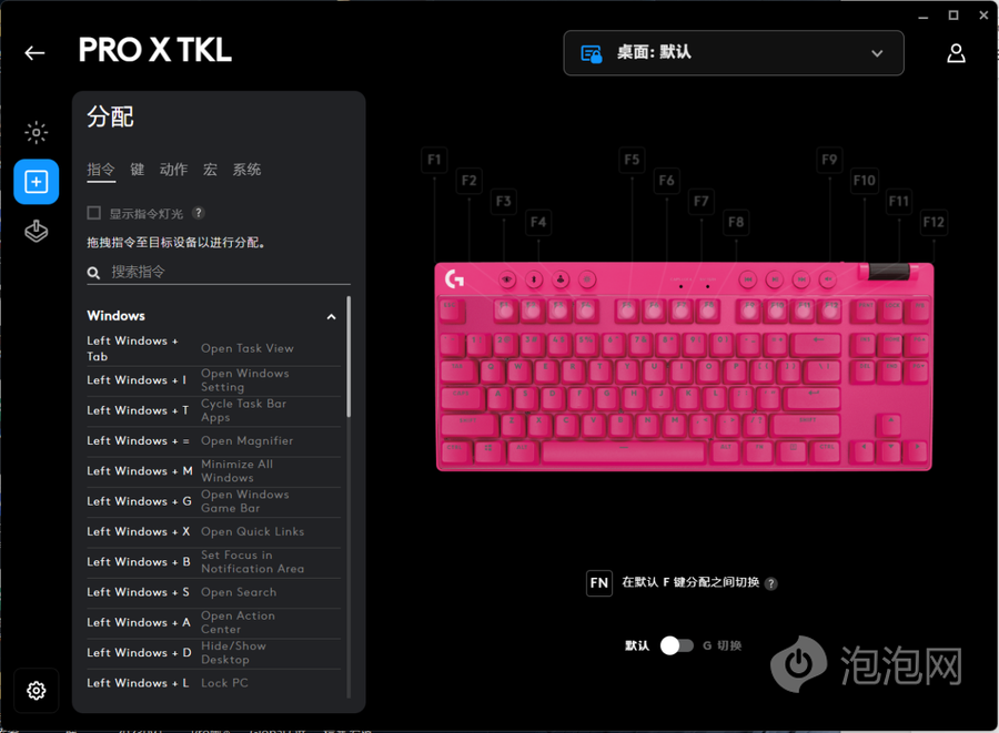 此外,在G HUB中还可以选择按键指令、设置宏命令,还支持Overwolf、OBS等软件的快捷操作,具备丰富的自定义能力,可以让你将罗技PRO X TKL LIGHTSPEED打造成更适合自己的键盘。