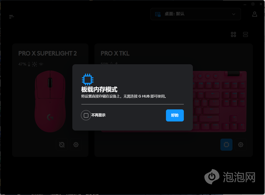 罗技PRO X TKL LIGHTSPEED还支持板载内存,将所有的设定均存储在键盘当中,即使更换其他没有安装G HUB的设备,也可以获得自定义之后的体验,更加方便。
