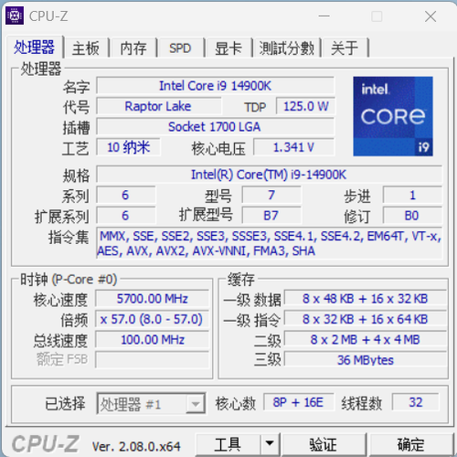 例如,笔者手中这颗酷睿i9-14900K,CPU-Z显示,这颗处理器的两个优质核心为P-Core #6和P-Core #7。