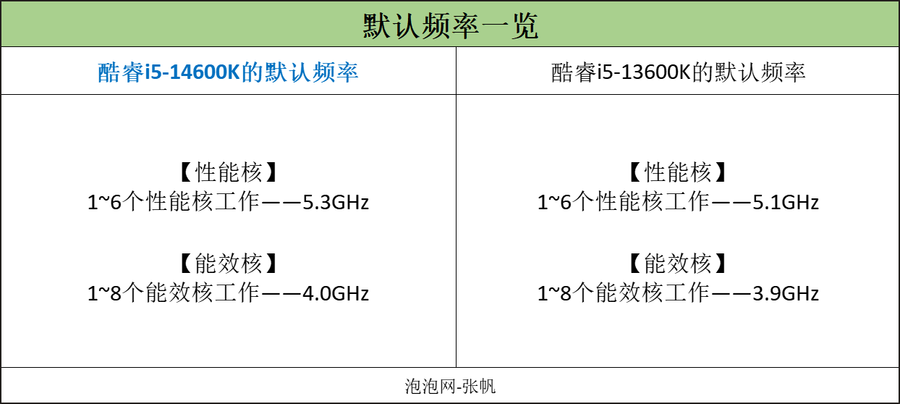 通过频率对比,无论性能核全核心睿频,还是能效核全核心睿频,酷睿i5-14600K均要比上一代酷睿i5-13600K略高一点。