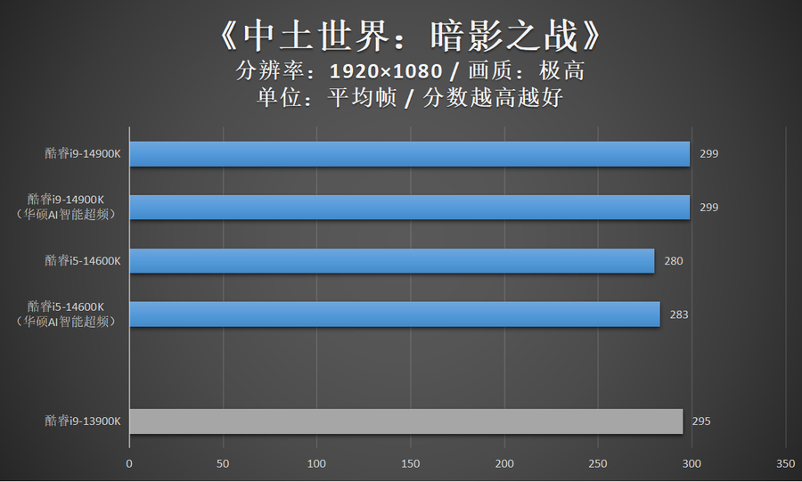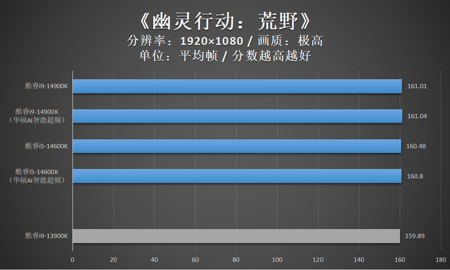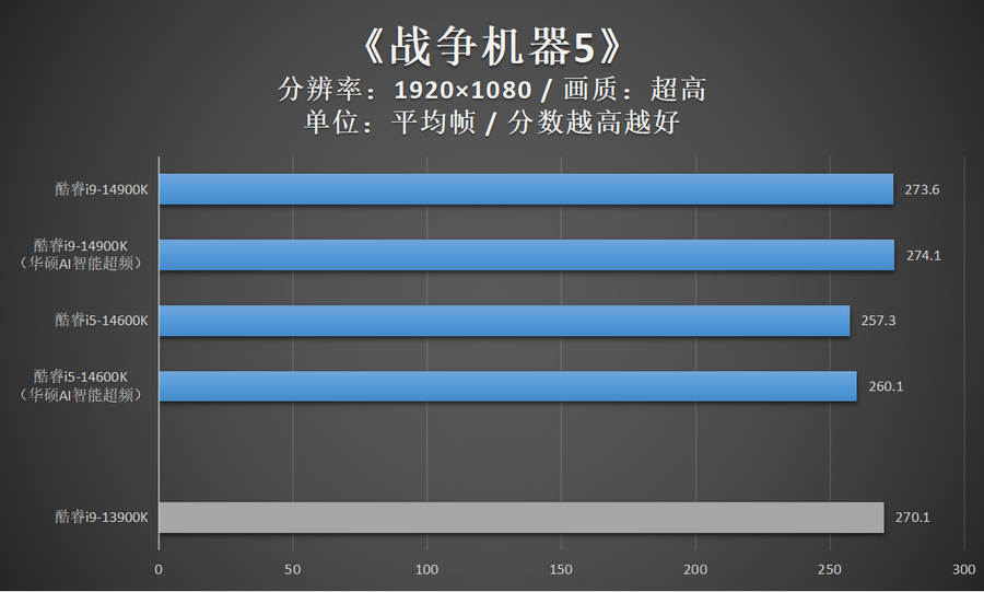 游戏测试小结:酷睿i9-14900K与酷睿i9-13900K毕竟仅存在较小的频率差异,因此在游戏性能方面,这两款处理器几乎一致。