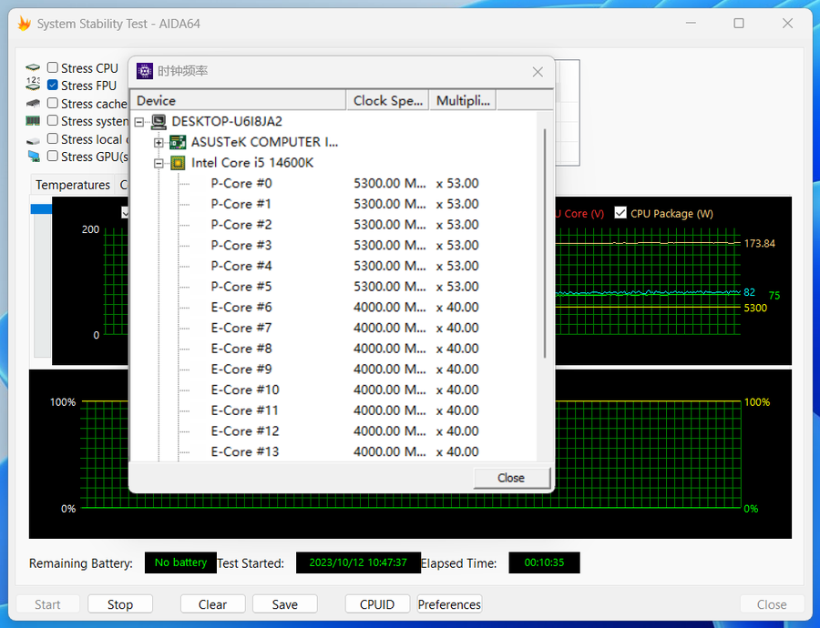 (酷睿i5-14600K——华硕AI智能超频状态下的满载温度表现)