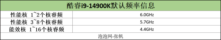 继续观察酷睿i9-14900K的默认频率设置。大家有没有想过,英特尔为什么要设计成这样?搞清楚这个,后面将要介绍的动态超频就很好理解了。