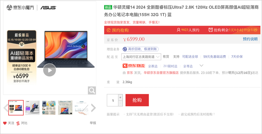 12月15日,2024华硕酷睿Ultra AI 超轻薄本新品发布会召开,全网首款英特尔酷睿Ultra轻薄本华硕灵耀14