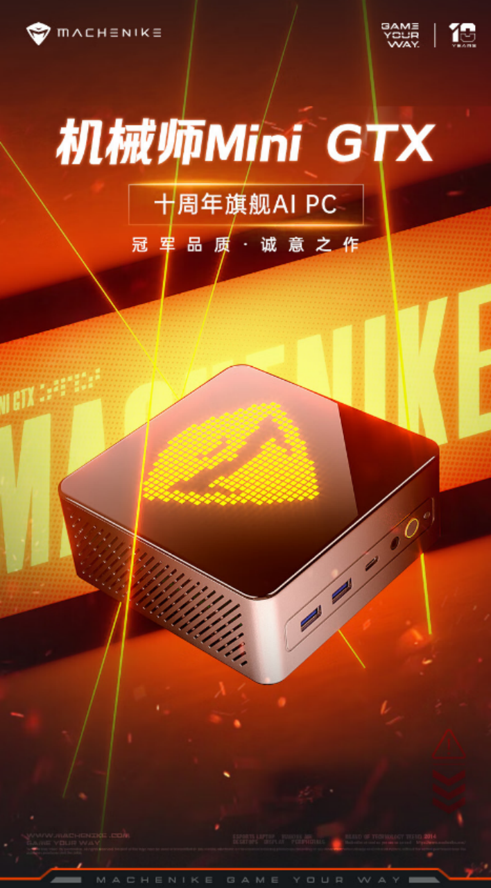 十周年旗舰产品——机械师GTX,以技术创新树立了高性能Mini主机的新标杆。搭载AMD锐龙9 7940HS处理器,采用先进4纳米工艺与RYZEN架构,不仅满足日常多任务处理需求,还可以驾驭AI应用场景。