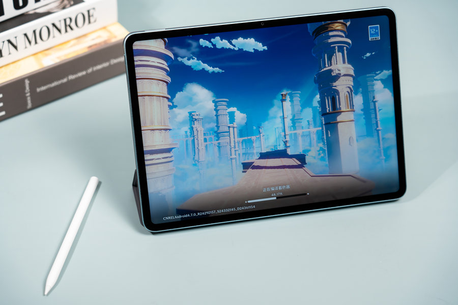 并且游戏后机身表面没有明显发烫,这得益于vivo Pad3机身内部采用的立体散热结构,增加了固态导热组件,来加速内部热源与外部环境的导热效率。并且还在CPU热源周围加入了高导热紫铜冷却矩阵,将CPU热量快速导出,主板还覆盖了27500 mm²的大面积石墨散热片,最终使机身温度得到了有效控制。