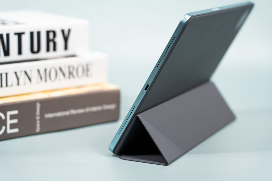 vivo Pad3有着轻薄的机身设计,厚度仅6.57mm,重589g,就算搭配双面夹、键盘等配件后也不会显得很累赘,非常方便携带。机身左右两侧设置有四个扬声器开孔,采用了四颗中低音+两颗高音单元的高低分频6扬声器系统,具备10.24cc超大音腔,支持vivo自研的Super Audio 5.0 计算音效和3D全景音频,有着更具临场感的立体声效果,非常适合看视频和玩游戏。