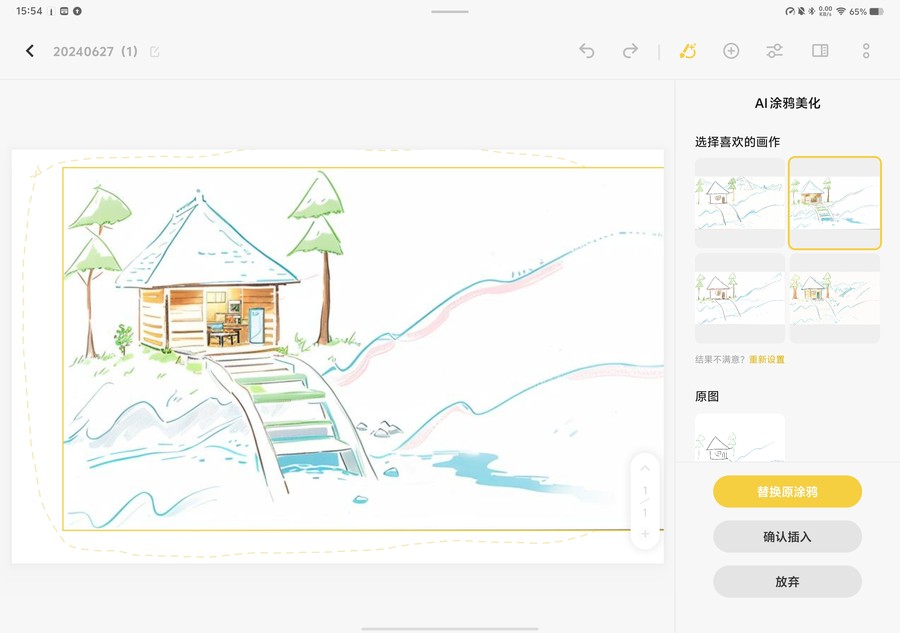 此外,原子笔记还支持AI涂鸦功能,既可以通过输入文字描述画面内容来生成图像,也可以对已有的手绘内容进行优化,这一功能既可以辅助画草稿,又可以提供灵感,对很多绘画爱好者来说也很实用。